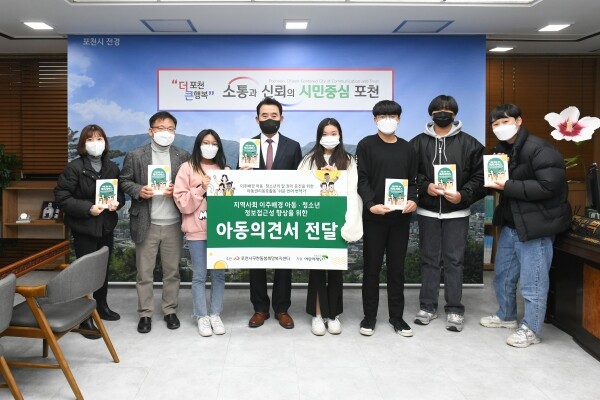 이날 초록우산 어린이재단 공모사업으로 진행된 아동권리옹호활동 ‘쉬운 언어 번역가’ 사업참여 아동들은 자신들이 제작한 아동의견서와 쉬운 말로 순화한 복지서비스 책자를 포천시에 전달했다.