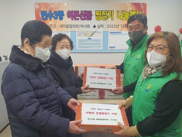 연수3동 새마을협의회와 새마을부녀회가 기부한 온열찜질기 31개는 지난 11월 진행한 전기요 지원 사업에 이어 지역 내 저소득 어르신 등 장애인 가구에게 전달할 예정이다.
