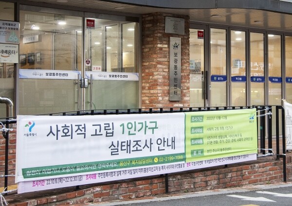 조사대상은 6587명. 지난해 중장년 이상 1인 가구 실태조사 시 조사를 거부했거나 부재중 구민 4407명 고독사 위험군 2053명 동주민센터 자체 사업 대상자 127명이다.