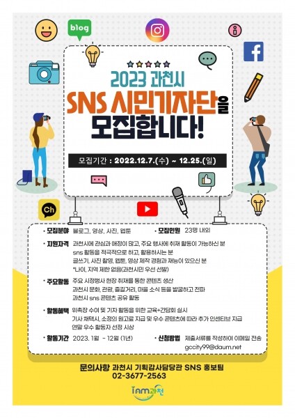 기자단이 작성한 콘텐츠는 블로그와 유튜브, 인스타그램 등 과천시 공식 SNS채널에 게시된다.
