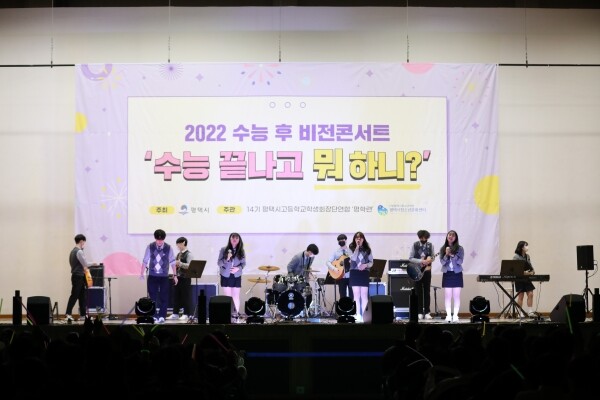 수능 후 비전콘서트 ‘수능 끝나고 뭐하니?’는 평택시가 주최하고 평택시청소년문화센터와 제14기 평택시고등학교학생회장단연합 ‘평학련’이 주관한 행사로 지난 2일 평택시청소년문화센터 체육관에서 수능이 끝난 관내 고등학교 3학년을 대상으로 열렸다.