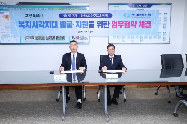 이날 협약식은 방경돈 일산동구청장과 윤만호 한전MCS고양지점장 등이 참석한 가운데 열렸으며 관내 복지사각지대 발굴·지원을 위한 양 기관의 긴밀한 협력체계를 구축하고자 추진됐다.
