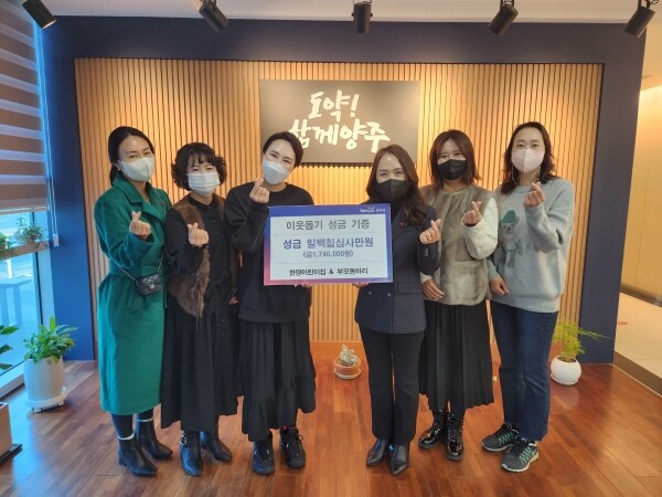 기탁한 성금은 경기도 사회복지공동모금회에 지정기탁 후 양주2동 지역사회보장협의체를 통해 어려운 이웃들에게 사용될 예정이다.