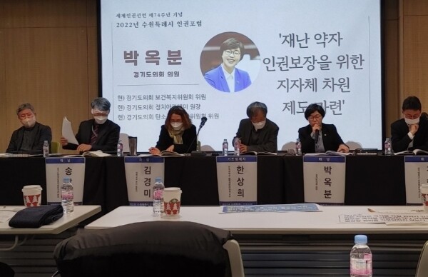 한편 박옥분 의원은 지난 11월 4일 ‘발달장애아동들의 지역마을 내 돌봄 환경개선 방안’ 토론회에 참석에 이어 11월 25일에는 ‘2022 경기도장애인권익옹호기관 인권포럼, 여성장애인근로자의 인권상황보고 및 개선방안’ 토론회에 참석했다.