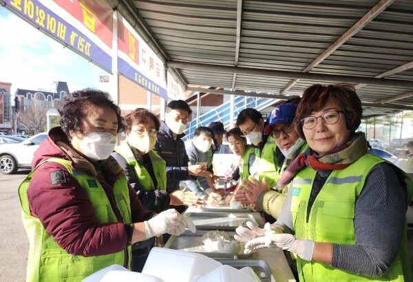 이날 행사는 추운 날씨에도 불구하고 직접 팥죽을 정성스럽게 만들어 가정에 전달하며 안부를 확인했다.