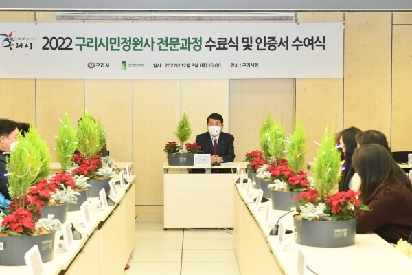 이날 구리시민정원사로 인증받은 12명은 지난 3월부터 12월까지 경기도 성남시 소재 신구대학교 식물원에서 식물의 환경과 생리, 정원 설계 및 조성 등 정원 분야에 대한 기본지식과 정원 조성 실습을 통해 시민정원사로서의 자질을 키워나갔다.