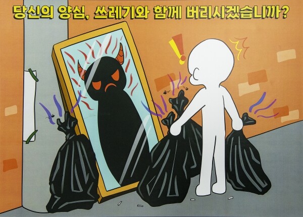 문수임 학생은 ‘당신의 양심 쓰레기와 함께 버리겠습니까’라는 제목 아래 버려진 거울에 비친 무단투기자의 모습을 악마처럼 그려 무단투기에 대한 경고를 표현했다.