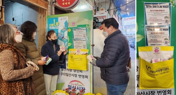 일회용 비닐봉투 사용을 줄이고 자원순환을 실천하고자 하는 자원봉사자들의 뜻을 일산전통시장상인회에서도 흔쾌히 받아들였다.