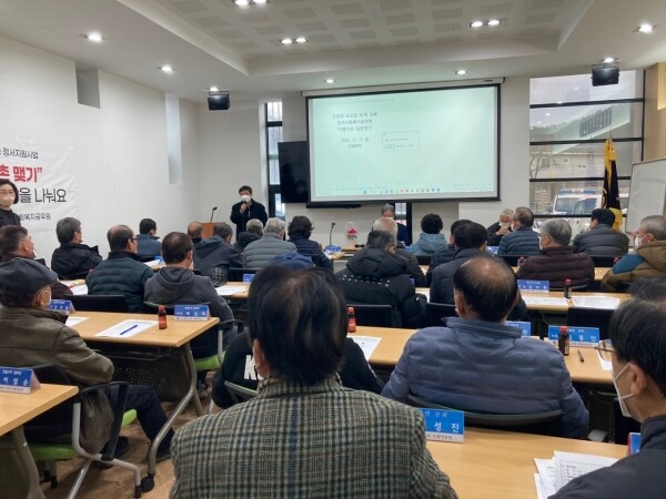 이날 교육은 18개소 경로당 회장과 사무장이 참석한 가운데 보조금의 적절한 집행을 위한 세부적인 내용에 대해 Q&A 방식으로 교육을 진행하며 궁금증과 고충을 나누며 이를 해결하는 시간을 가졌다.