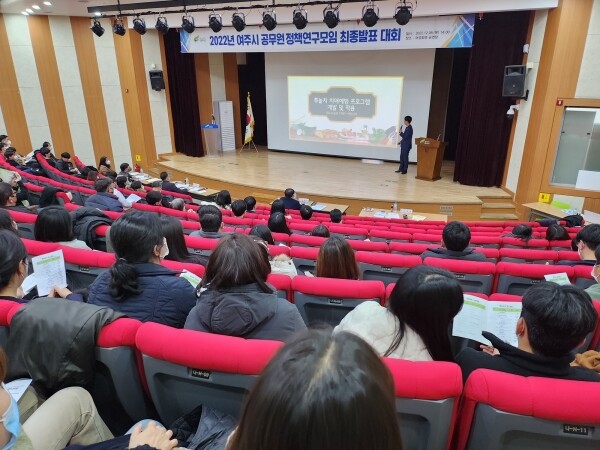 여주시가 공직자들의 자발적 연구모임을 통한 다양한 분야의 역량 및 시정발전을 위한 창의적이고 실현가능한 정책개발을 위한 ‘공무원 정책연구모임’을 기획, 2022년도 정책연구모임으로 9개 팀 57명의 공직자가 참여해, 지난 5월부터 5개월 간 시정발전을 위한 창의적 아이디어와 뜨거운 열정을 보이며 진행돼왔다.