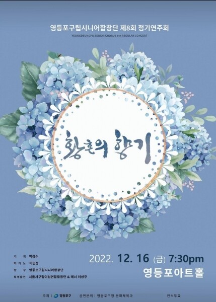 ‘영등포구립시니어합창단’은 제8회 정기연주회를 오는 16일 오후 7시 30분에 영등포아트홀에서 개최한다.