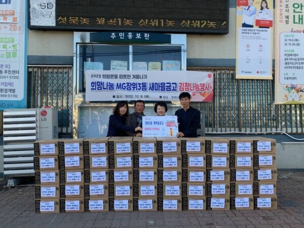 이은미 장위3동 새마을금고 이사장은 “추운 겨울 어려운 이웃들이 건강하게 생활하는 데에 조금이라도 도움이 되기를 바라는 마음으로 김장김치를 준비했다”며 “앞으로도 지속적으로 장위3동 주민센터와 협업해 지역내 취약계층을 위한 나눔 활동을 이어 나가겠다”고 말했다.