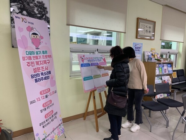 첫날 설문에 참여한 한 주민은 “장기동에 거주하며 복지서비스를 받은 지 오래되었는데 복지욕구 설문조사는 처음 참여해본다”며 “주민들의 목소리가 반영돼 복지서비스를 제공받는다면 더욱 의미있게 느껴질 것 같다”라는 소감을 밝혔다.