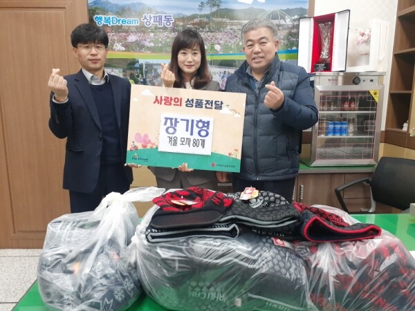 상패동 주민 장기형 씨는 지역사회 취약계층이 따뜻한 겨울을 보낼 수 있도록 전달해 달라며 성인용 겨울모자 80개를 기부했다.
