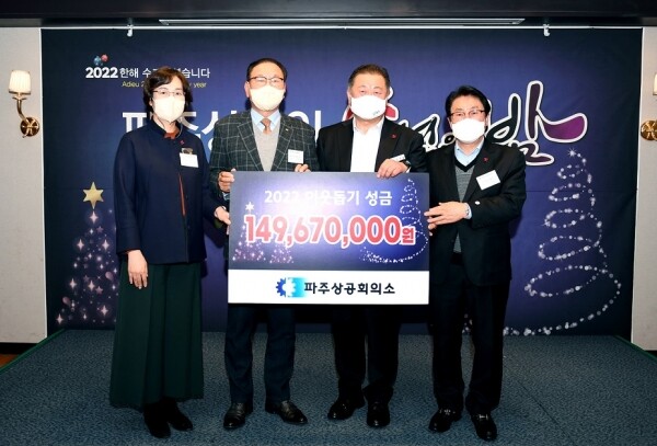 파주상공회의소에서는 매해 불우이웃돕기 성금을 모아 파주시에 전달하고 있으며 대내외적으로 어려운 여건에도 1억4,967만원을 파주시에 전달했다.