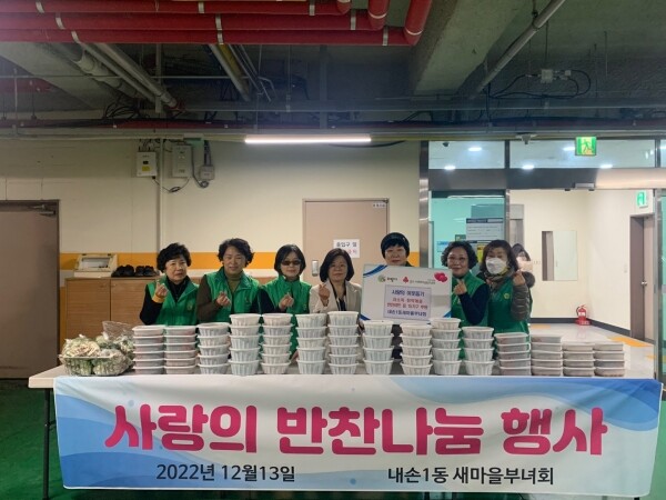 안상숙 동장은 “어려운 여건임에도 늘 지역주민을 위한 봉사활동을 실천해 주시는 내손1동 새마을부녀회 회원님들께 감사드리며 정성 담긴 반찬과 세제는 필요한 이웃에게 골고루 나눠 드리겠다”고 말했다.