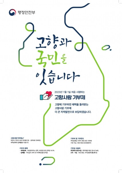 고향사랑기부제는 개인이 주소지 외 지자체에 연간 500만원 한도 내에서 기부하면 기부자는 기부액 10만원까지는 전액 세액공제, 10만원 초과분은 16.5%의 세액공제 혜택과 함께 기부액의 30%를 답례품으로 받을 수 있는 제도이다.