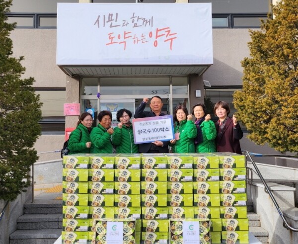 [뉴스써치] 양주시 양주1동 새마을부녀회는 연말을 맞아 지난 13일 양주1동 행정복지센터에 쌀국수 100박스를 전달했다.
