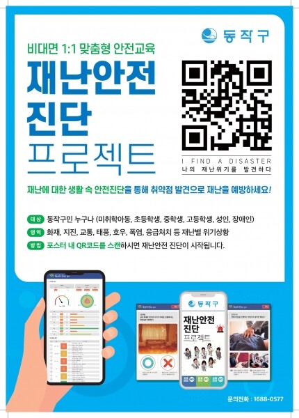재난안전진단을 받기 원하는 구민은 이달 31일까지 동작구청 누리집, 사회관계망서비스 채널 또는 포스터에 부착돼 있는 QR코드를 통해 누구나 참여할 수 있다.