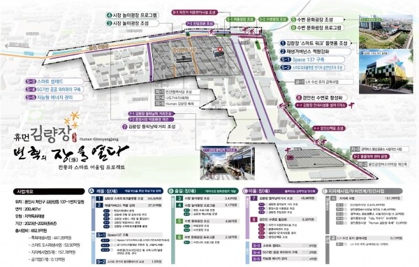 이용객들의 편의를 위해 시장 안에 전기차 충전스테이션을 구축하고 5G 기반 공공와이파이, 전기화재 사전예방 지능형 에너지 관리, 스마트 가로등, 범죄예방 로고젝트 등의 스마트·ICT 기술을 접목해 더욱 편리하고 안전한 쇼핑 환경을 제공할 계획이라고 전했다.