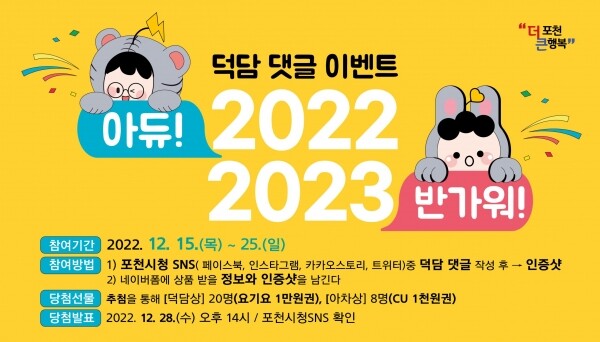 당첨자는 오는 28일 포천시청 SNS에서 발표되며 추첨을 통해 20명에게 덕담상, 8명에게는 아차상을 제공한다.