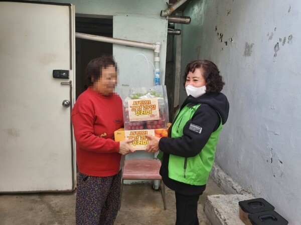 송현1·2동 지역사회보장협의체 위원들은 직접 해당 가정을 방문, 과일 꾸러미를 전달하고 안부를 살폈다.