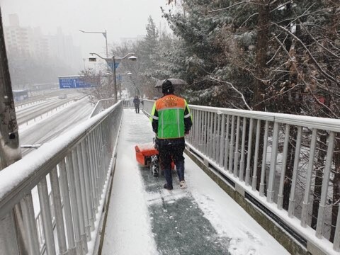 이에 관내 육교 중 유동인구가 많고 횡단보도와 거리가 먼 육교에 대해 육교제설반을 운영해 대설특보 시민의 안전한 보도육교 이용환경 조성 및 안전사고를 예방하기 위해 제설반이 구축됐다.