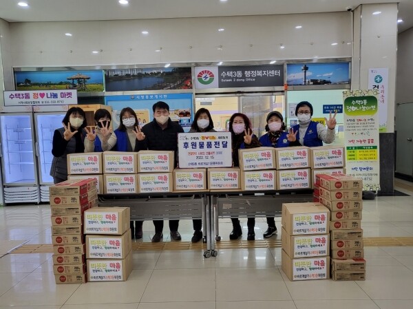 이번 행사는 경기침체와 코로나19의 장기화로 복지사각지대에서 어려움을 겪고 있는 분들에게 나눔의 손길을 나누고자 바르게살기운동수택3동위원회 위원들이 생활에 필요한 물품을 정성껏 포장해 수택3동 행정복지센터에 전달했다.