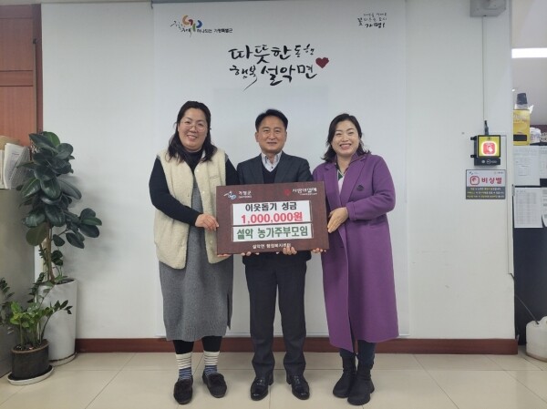 이에 이범주 설악면장은 “관내 어려운 이웃을 위해 매해 큰 금액의 성금을 기부해 주신 농가주부모임에 감사 인사를 전한다”며 “유독 더 힘든 시간을 보낼 수밖에 없는 저소득 가구에게 따뜻한 마음을 나누어 주셔서 감사하다 관내 복지사각지대 취약계층이 발생하지 않는 설악면을 만들어 나가도록 하겠다”고 화답했다.