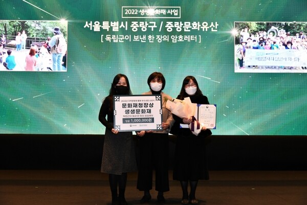 이번 수상은 전국 165개 생생문화재 사업에서 선정된 11개 중 하나로 프로그램의 우수성을 인정받게 됐다.