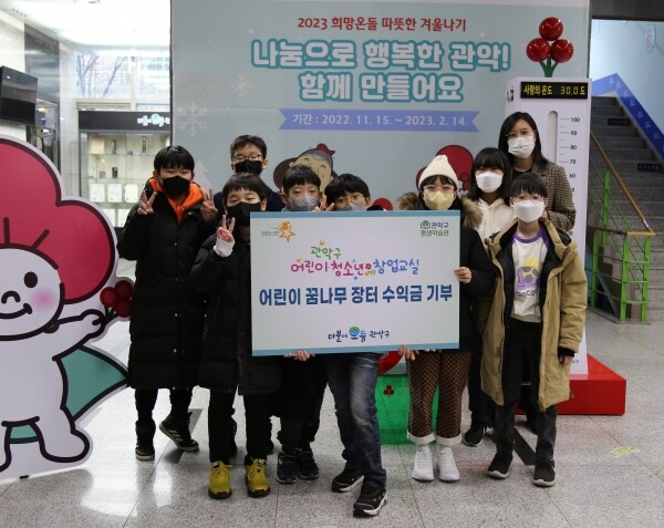 이번 성금은 지역 학생들의 체험활동 및 진로 개발을 위해 운영한 ‘관악구 어린이 청소년 창업교실’을 참여한 어린이들이 스스로 창업의 아이템을 제작하고 판매하는 ‘창업자 꿈나무 장터’를 열어 판매수익금 전액 16만원을 따뜻한 겨울나기 모금함에 기부했다.