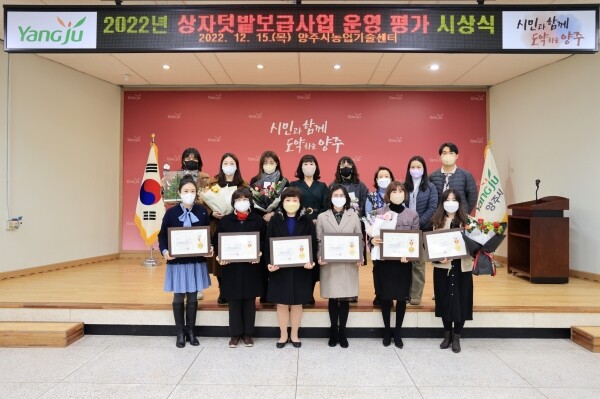 이날 시상식에는 관계 공무원, 수상대상자 등 20여명 참석했으며 꼬마농부분야에서 사랑숲어린이집이 최우수상을 수상, 상자텃밭 보급사업분야에서는 최우수상은 고암어린이집, 우수상 옥정어린이집, 장려상 양주경찰서 젠아이, 천보어린이집이 수상했다.