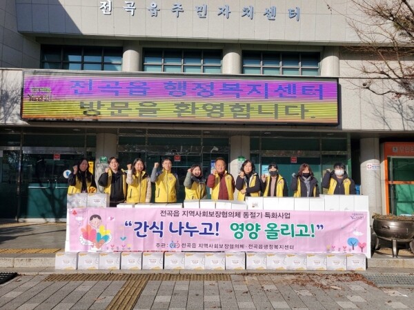 전곡읍지역사회보장협의체는 복지사각지대 발굴을 통해 대상자를 선정해 전복죽, 사골곰탕 등의 음식 꾸러미와 포기김치를 행정복지센터 직원들과 함께 전달했다.