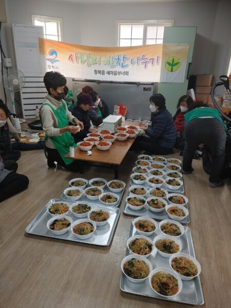 청북읍 새마을부녀회는 사랑의 밑반찬 나눔 봉사를 비롯해 삼계탕 나눔 봉사, 헌 옷 모으기 행사 등 지속적인 봉사와 나눔을 통해 지역사회 공동체 발전에 이바지하고 있다.