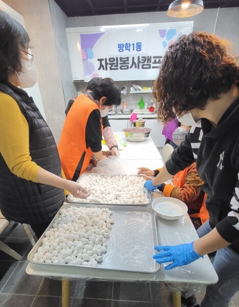 폭설과 영하 10도의 강추위가 맹위를 떨치던 12월 15일 방학1동 자원봉사캠프 자원봉사자 10여 분은 추운 날씨에도 불구하고 주민센터에 모여 팥을 손질하고 새알을 빚어 정성스럽게 팥죽을 완성했다.