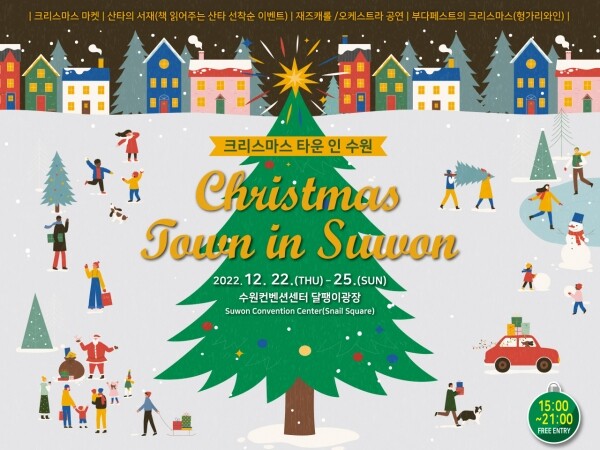 수원컨벤션센터 관계자는 “크리스마스 타운 인 수원은 시민들과 함께 ‘지역특화 광장사업’을 육성하기 위해 마련한 행사”며 “수원마이스복합단지, 행정협의체, 관내 교회 등 다양한 기관이 함께 참여하는 지역축제로 만들 것”이라고 말했다.