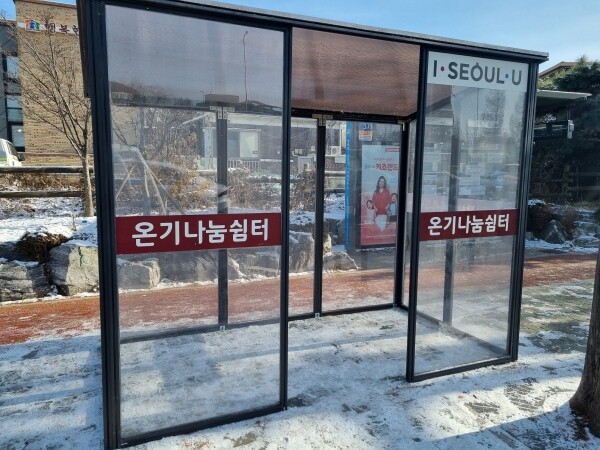 온기나눔쉼터는 주민들이 대중교통을 이용하거나 횡단보도에서 보행신호를 기다릴 때 추위를 피할 수 있는 휴식처다.
