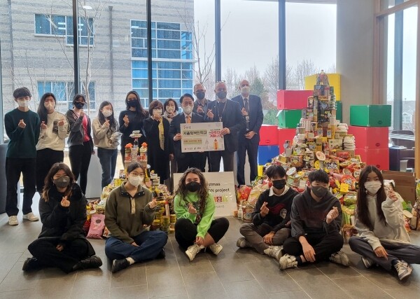 서울외국인학교 재학생들은 참치캔, 컵라면, 쌀, 즉석조리식품 등을 기부해 550만원 상당의 일명 ‘식품트리’를 만들었다.