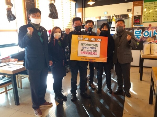 파주거북이산악회에서는 18일 저소득층 중·고등학생 5명에게 오찬을 제공하며 장학금 200만원을 전달했고 금촌농협에서는 19일 저소득층도 돕고 파주시 대표 브랜드 한수위 쌀 소비 촉진을 위해 50포를 기부하는 등 꼬리에 꼬리를 무는 온정이 이어지고 있다.