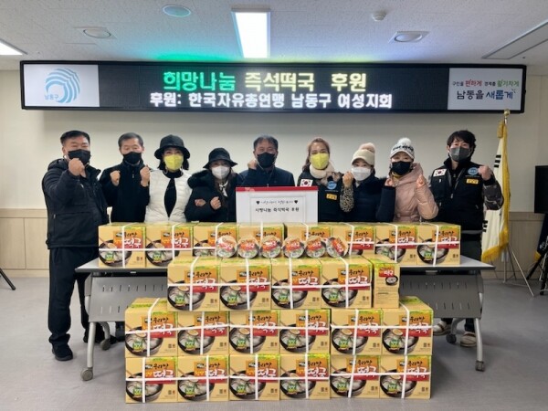 ▲ 한국자유총연맹 남동구 여성지회, 구월1동에 즉석 떡국 50박스 기부