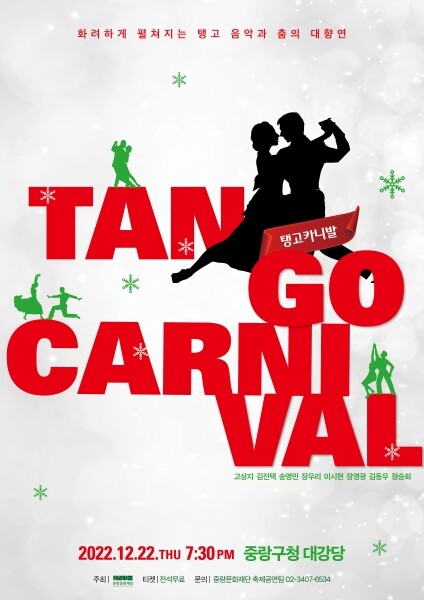 중랑구는 오는 22일 저녁 7시 30분, 중랑구청 대강당에서 중랑문화재단이 주최하는 ‘탱고 카니발’ 공연이 개최된다고 밝혔다.