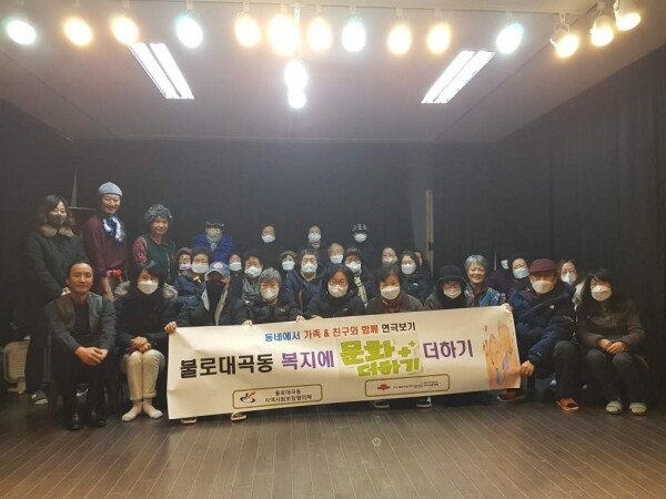 ‘복지에 문화를 더하기’는 올해 불로대곡동 지역사회보장협의체의 연간사업으로 서구 문화충전소 대중아트컴퍼니소공연장에서 두 여인의 고된 삶을 유쾌하게 풀어낸 공연인 ‘두 할매’를 보는 활동이다.