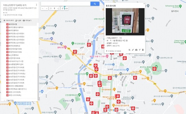 이번에 새로 추가된 자료는 심폐소생술의 필수장비인 자동심장충격기 위치 및 사용법을 제공함으로써, 다중인파 밀집 재난 발생시 신속하게 AED를 찾아 현장에서 CPR 대응에 총력을 기울일 수 있게 됐다.