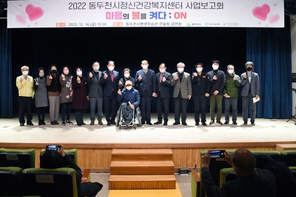 이날 박형덕 동두천시장은 한 해 동안 시민의 정신건강 증진을 위해 애쓴 종사자와 관련자의 노고를 격려했으며 “정신건강복지센터가 1년 동안 추진해 온 정신건강사업의 보고와 평가를 통해 잘 된 것은 더욱 발전시키고 보완할 사업은 보완해 시민의 정신건강에 더욱 힘써 줄 것”을 당부했다.