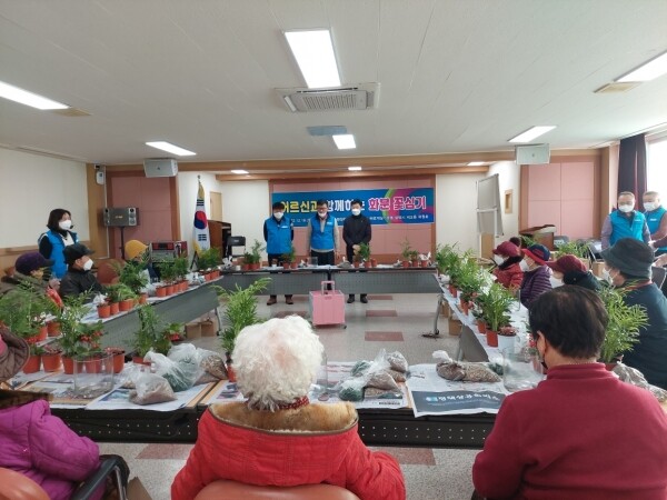 이날 행사는 어르신들과 공기정화 식물을 가꾸는 강의와 함께 화초심기 체험활동을 하며 건조한 실내에서 공기정화 식물을 가꾸며 어르신들이 건강하게 겨울을 날 수 있도록 도왔다.