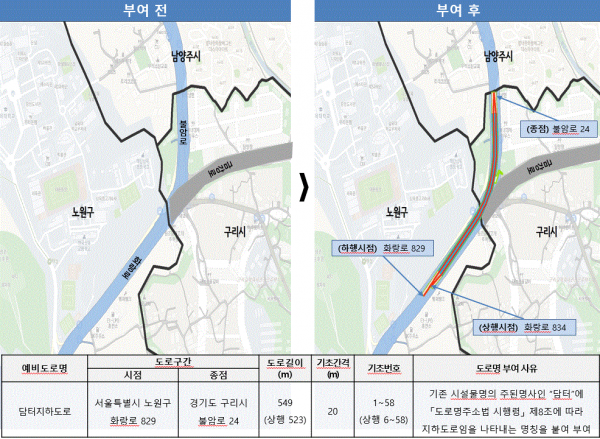 이번에 도로명 부여가 결정된 곳은 2개 이상의 광역자치단체에 걸쳐있는 담터지하차도, 봉오고가교 등 5개 도로구간이다.