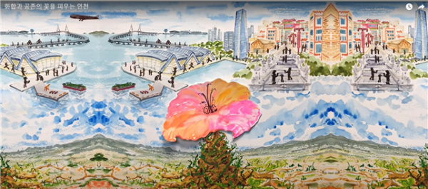 대상 수상작인 ‘화합과 공존의 꽃을 피우는 인천’은 꽃과 인천이 한 폭의 수채화로 그려지는 과정을 담은 라이브드로잉 영상으로 꾸며진 ‘외국인주민이 인천에서 어우러져 살아가는 인천의 꿈과 대한민국의 미래’를 담았다.