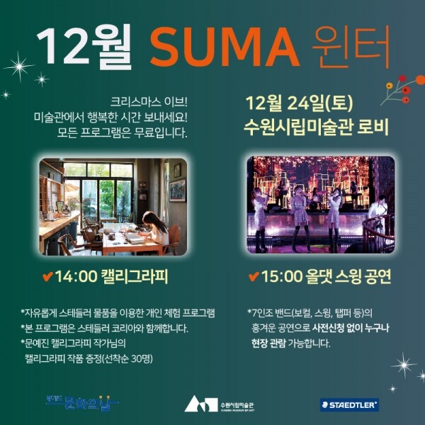 ‘SUMA 윈터 페스티벌’은 총 두 개의 프로그램으로 첫 번째 프로그램은 독일 명품 필기구 브랜드 스테들러코리아와 함께 손글씨 작업 캘리그라피를 운영한다.