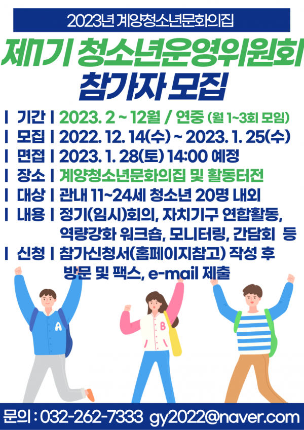 계양청소년문화의집은 마을과 함께 성장하는 청소년 주도의 참여 활동을 통해 청소년 자치 역량 강화에 기여하고자 청소년운영위원회를 운영한다.