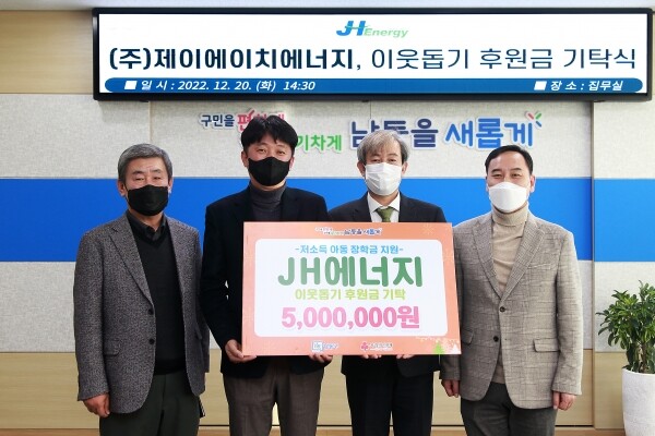 박종효 남동구청장은 “후원금을 기부해주신 ㈜제이에이치에너지에 감사드리며 후원해주신 성금이 저소득층 아이들의 꿈을 키우는 데 보탬이 되는 희망의 온기가 될 수 있도록 최선을 다하겠다”고 전했다.
